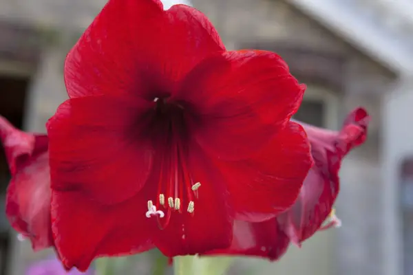 HIPPEASTRUM 'Red Lion' tem grandes flores escarlate. Para obter melhores resultados, cresça à temperatura ambiente, cerca de 20 ° C em uma sala bem iluminada, na posição mais ensolarada que você pode dar. A água com moderação a princípio, aumentando a quantidade à medida que as hastes das flores se desenvolvem.