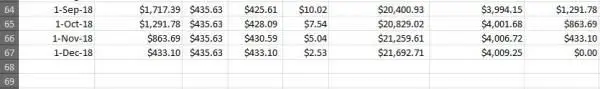 - A última célula na coluna H (neste exemplo, H67) deve terminar em $ 0,00. Caso contrário, verifique novamente as fórmulas inseridas.