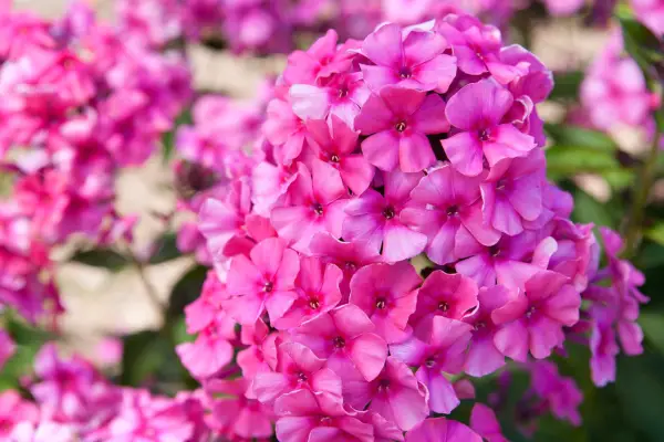 Flox, como Flox paniculata 'Cherry Pink' (na foto) são plantas clássicas de jardim, ideais para o meio de uma fronteira, e também fazem flores bonitas.